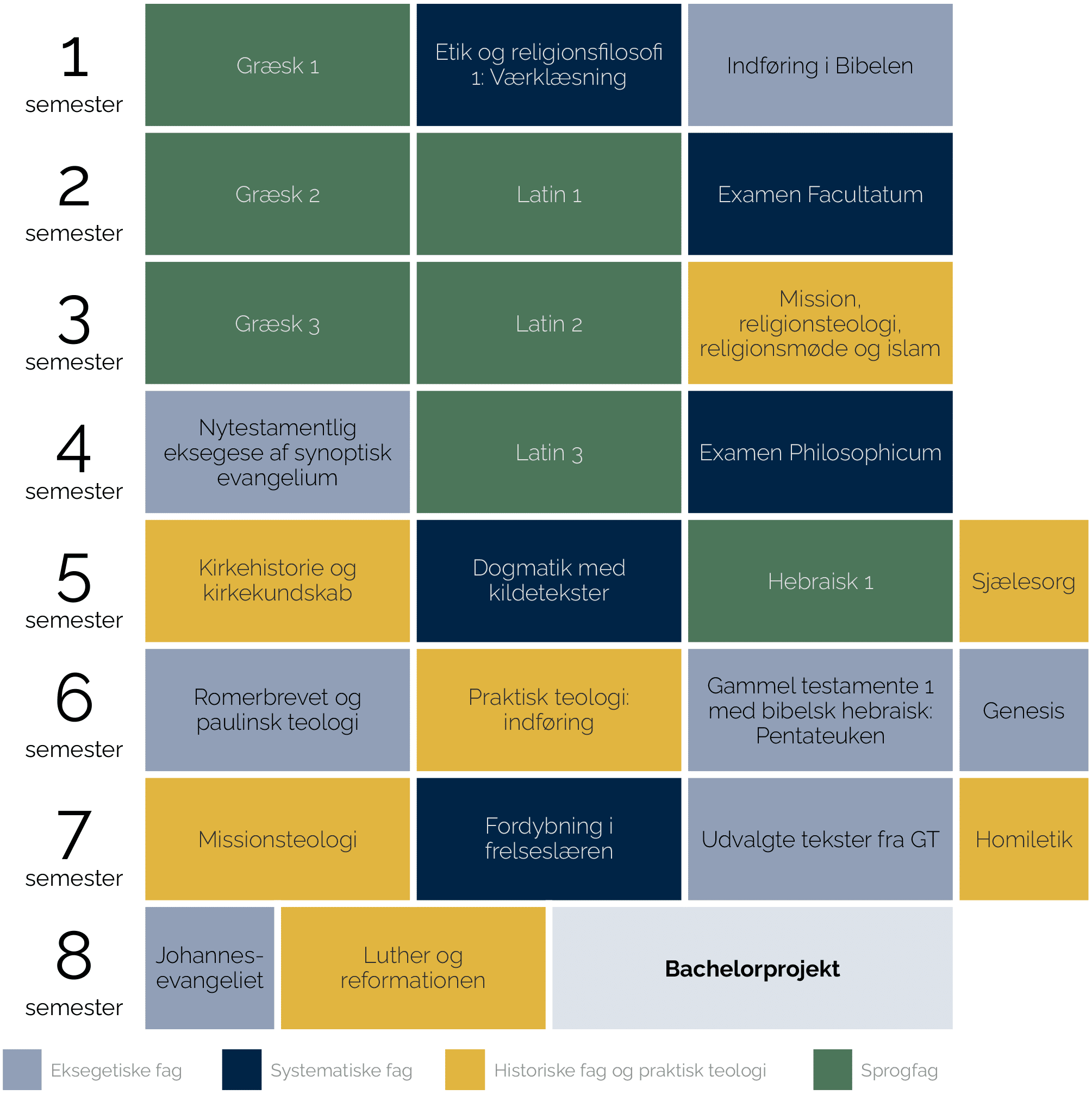 Sprogfagene hebraisk og græsk danner grundlaget for de eksegetiske fag, hvis formål er at give redskaber til at læse og forstå de bøgerne i Bibelen og deres sammenhæng og indbyrdes relation.